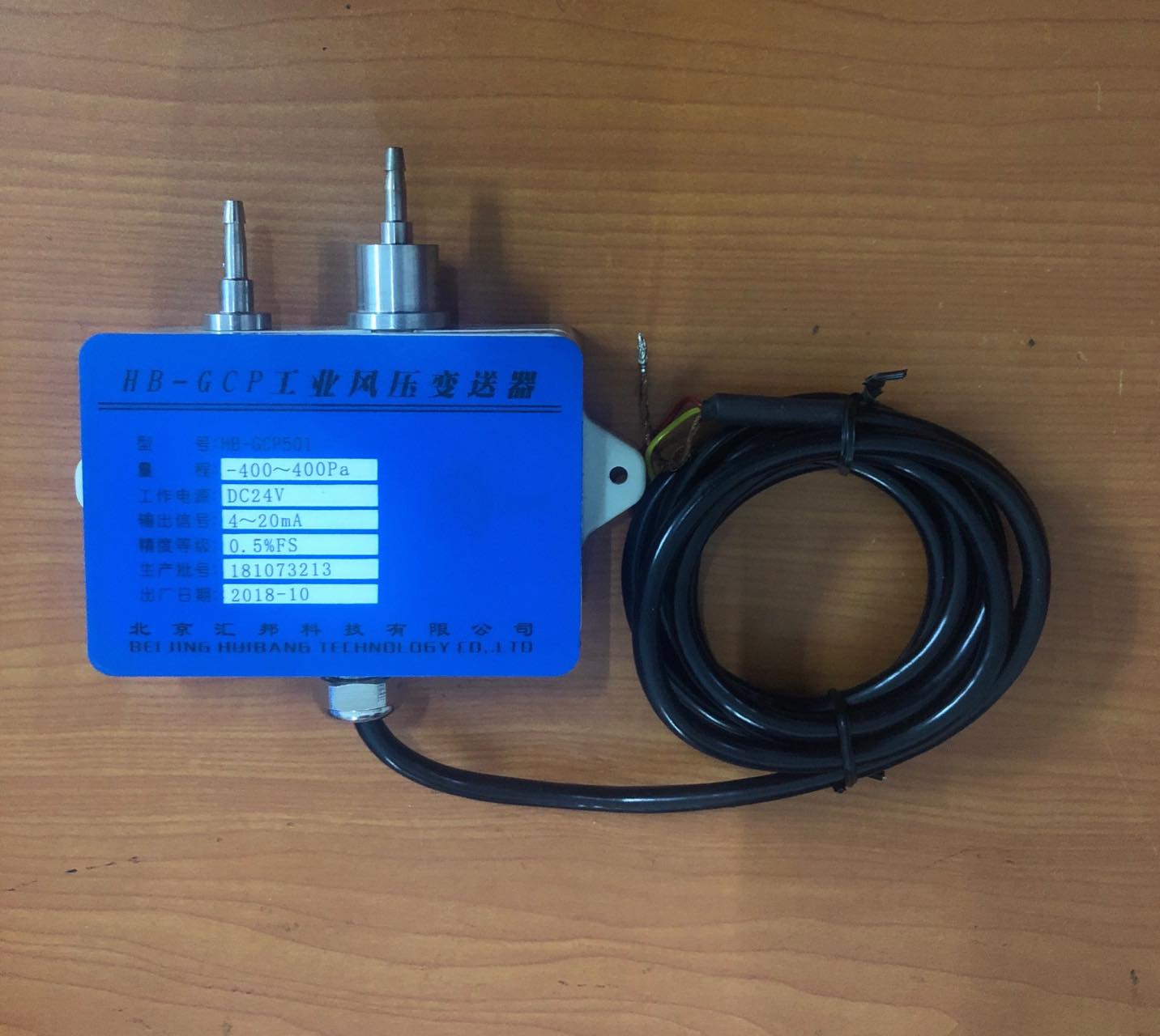 Type: HB-GCP501 (Air Pressure Transmitter) Pressure: ±400Pa & ±800Pa Signal: 4-20mA Power: 24V DC |