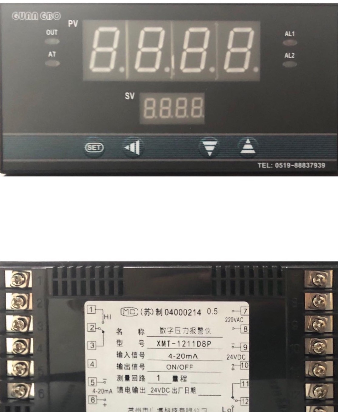 Type: XMT-1211D8P Output: 4~20mA Power Supply: 220V AC