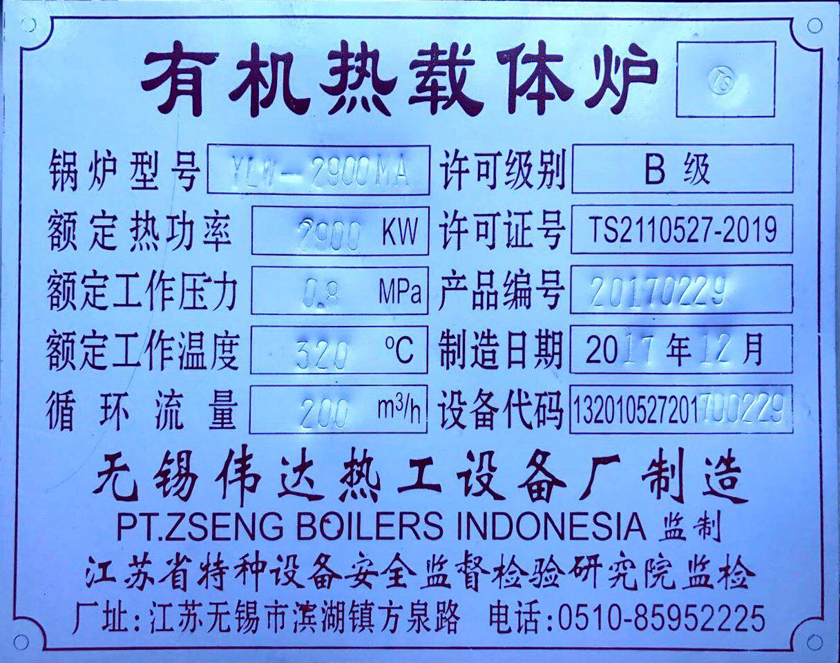 One unit 250x104 Kcal/hr, YLW-2900MA Thermal Oil Boiler.